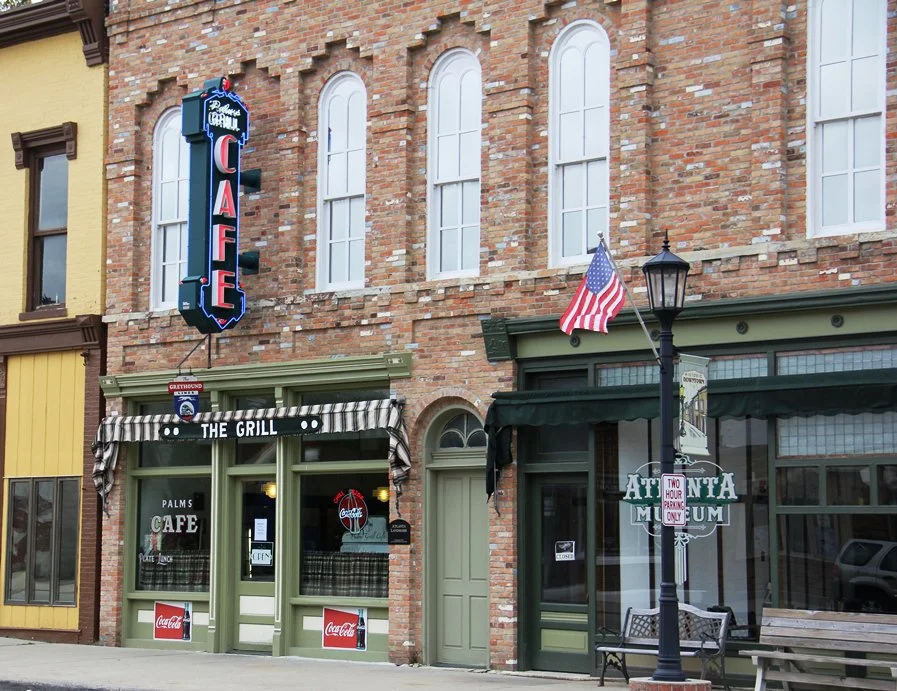 The Atlanta Public Library District’s Palms Grill Cafe and the Atlanta Museum, all located in downtown Atlanta, IL, on historic Old Route 66!